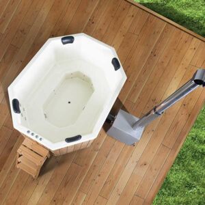 Das neue Modell aus der Serie der achteckigen Hottubs ist geräumiger geworden und kann bis zu 9 Personen beherbergen. Dieses Badefass kombiniert natürliche und moderne Materialien gleichzeitig. Die Außenseite ist mit Thermoholz verkleidet. Das Innere des Badefasses, der Einsatz, besteht aus hochwertigem GFK, der eine sehr hohe Umweltbeständigkeit, einfache Wartung und lange Lebensdauer gewährleistet. Sie können die Grundausstattung mit Spa-Wellness Komponenten erweitern und zwischen einem Holzofen oder einem elektrischen Heizer wählen.